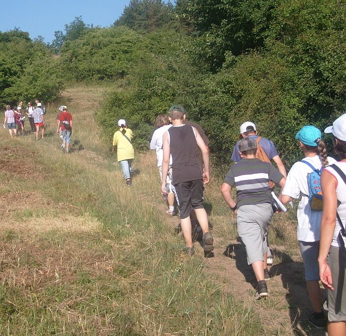Az ötödik pecsét birtokában és abban a tudatban, hogy már csak 2 km van hátra, nagy örömmel botorkáltunk végig a „horhos"-on, ahol még az idei löszfalomláson is át kellett jutnunk. A szőlőhegyről kiérve megpillantottuk a halastavat, a másik oldalon pedig egy helyi vállalkozó lámáit és emujait vehették szemügyre gyermekeink.