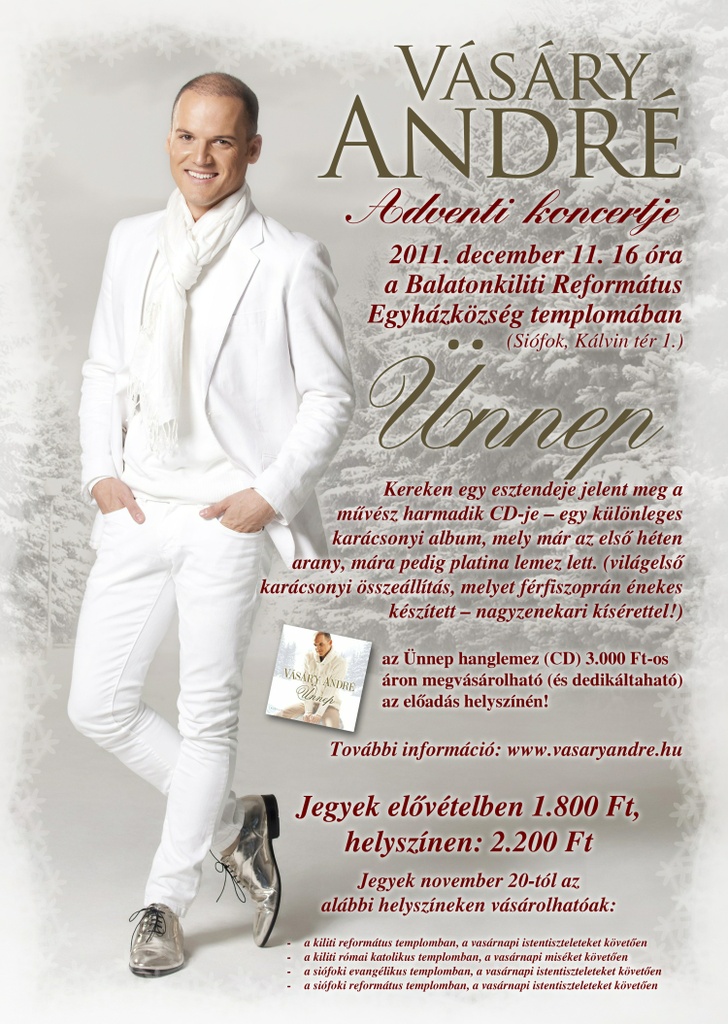December 11-én (vasárnap) 16 órakor a kiliti templomban Vásáry André ad koncertet, melyre szeretettel várnak bennünket.